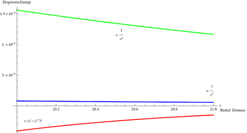 Here is a plot of a comparison between the Morse potential shape at large distances versus two other dispersion terms. It turns out that the red is only valid when two atoms are close, while farther out the green one becomes valid. Then even farther out recently it is shown that the blue shape is the true interatomic potential in the assymptotic region.